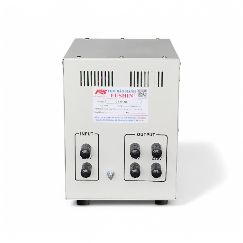 - Với ổn Áp FUSHIN, điện được nâng lên đến 220V (hoặc 110V theo yêu cầu), đảm bảo hoạt động trơn tru.